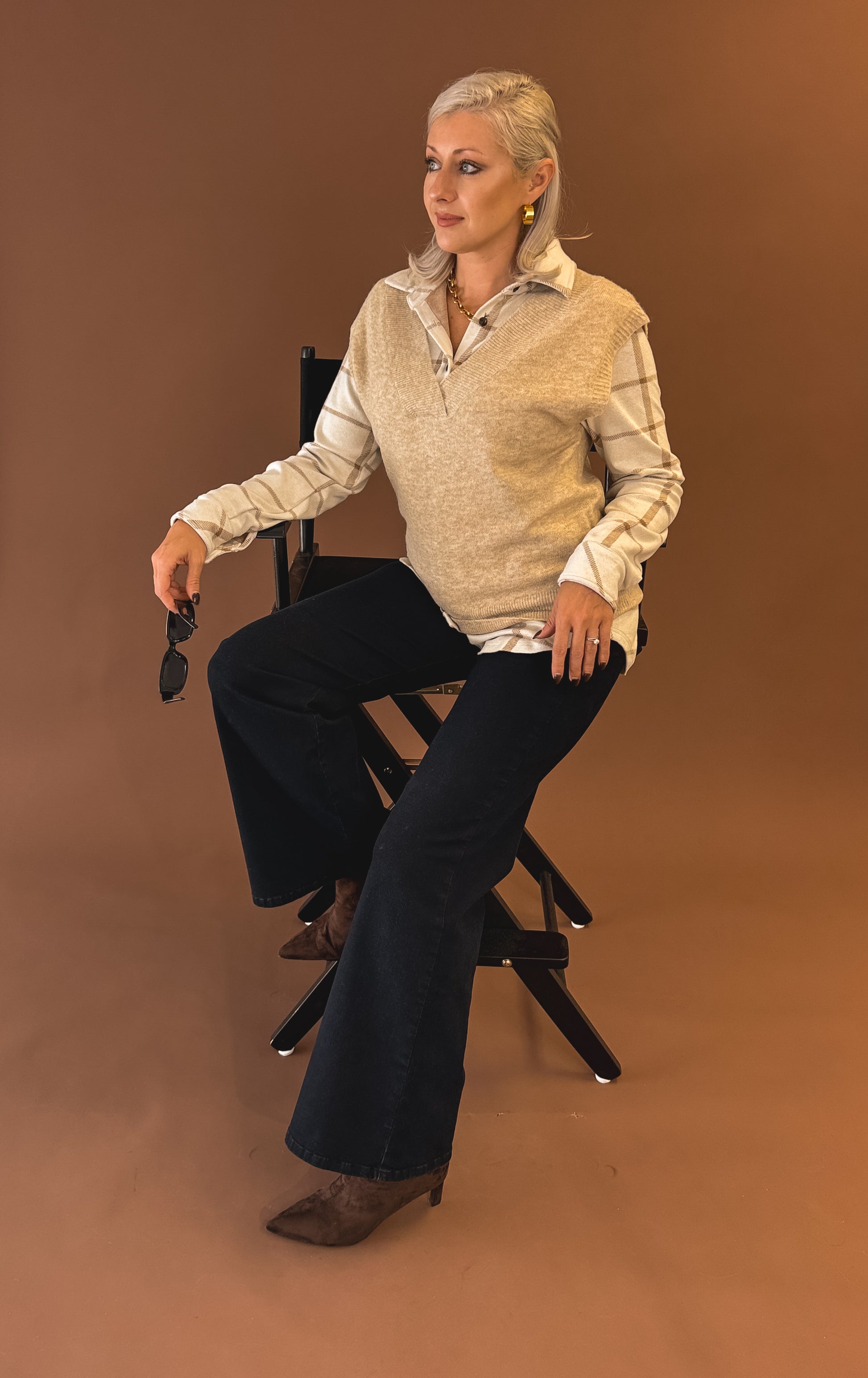 The Editor Vest – Oversized V-Neck Sweater Vest in Oatmeal